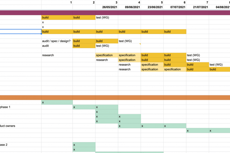 Kind of a large Gantt chart of all the streams, at a sprint by sprint level. We will aim to keep this up to date sprint by sprint for the team and wider community to be able to keep track of plans.