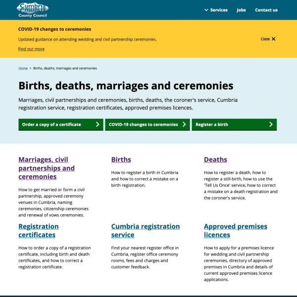 Meanwhile, Dan Champion has been building a sub-theme for Cumbria County Council on top of the LocalGov Base theme, which is starting to look nice.